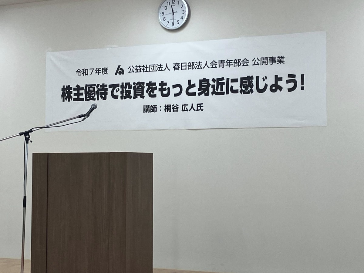 先日、春日部法人会主催の講演会に伺いました。 今回は運営メンバーとしての参加。 講師は株主優待で生活することで有名な桐谷広人さん。地域の皆さんの関心の高い「投資」がテーマだということもあり、大盛況となりました。 わたしはコロナ禍に40代後半という比較的遅い年齢で起業したため、年齢制限のある青年部の活動に参加...