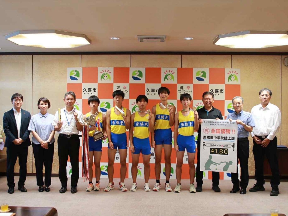 昨日は、第52回全日本中学校選手権(全中)の男子4×100mリレーで、41.80秒という中学記録で見事に優勝を果たした栗橋東中学校の校長・陸上部顧問・選手の皆さんが市長室を表敬訪問してくれました。 わたしも地元の議員として出席させていただきました。 選手たちと会って感心したのはのは、メディアの記者など多くの...