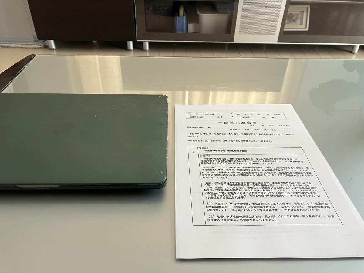 今日は朝からもうじき始まる9月定例会議の一般質問の通告原稿を作成しました。 今回は ・部活動の地域移行 ・自治体DX の2点を掘り下げて通告することにしました。 今回も少し長めの文章になってしまいましたが、特に部活動については、保護者の方に話を伺ったり、国や他市の動向を調査したり、周囲の議員さんたちと意見交...