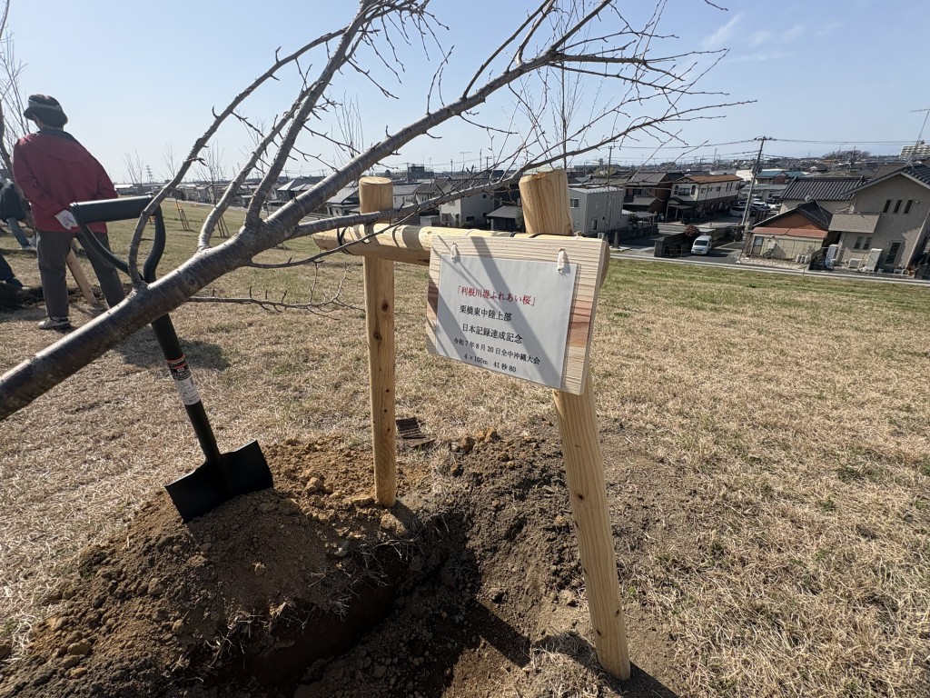 栗橋東中陸上部の全国優勝記念の桜も。お手伝いに来ていた栗橋東中学校陸上部3年生のみなさんも積極的に参加してくれていました。