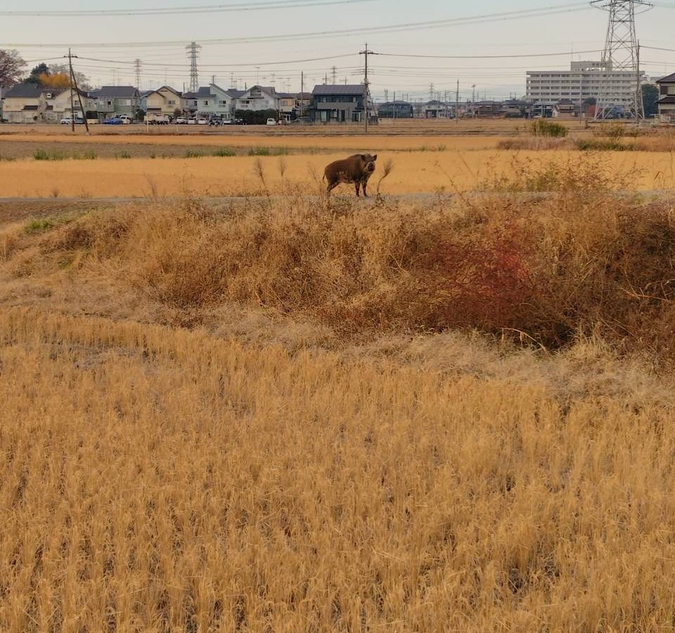 今日のAMから栗橋東6丁目に出没したイノシシ。 わたしも現場に向かい、埼玉県警、そして久喜市の環境課の職員さんらと共に、イノシシが市民に危害を加えぬよう、その動向をみていました。 久喜市の環境課職員さんが、箱ワナを仕掛けてくれましたが、捕獲はできず。そう簡単にはいきませんね。。。 なお、わたしが今日見た限り...