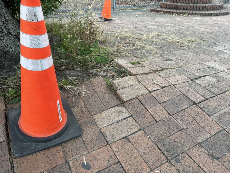 南栗橋駅東口駅前から上り・下りそれぞれの方面に線路沿いに伸びる歩道。 インターロッキング舗装されていますが、樹木の根上がりによって、歩道がうねったり、段差ができたりして、歩行者にとって危険な状態になってしまっています。 市の担当課に相談したところ、さっそく職員さんが現地を見にきてくれたようです。 成長した樹...