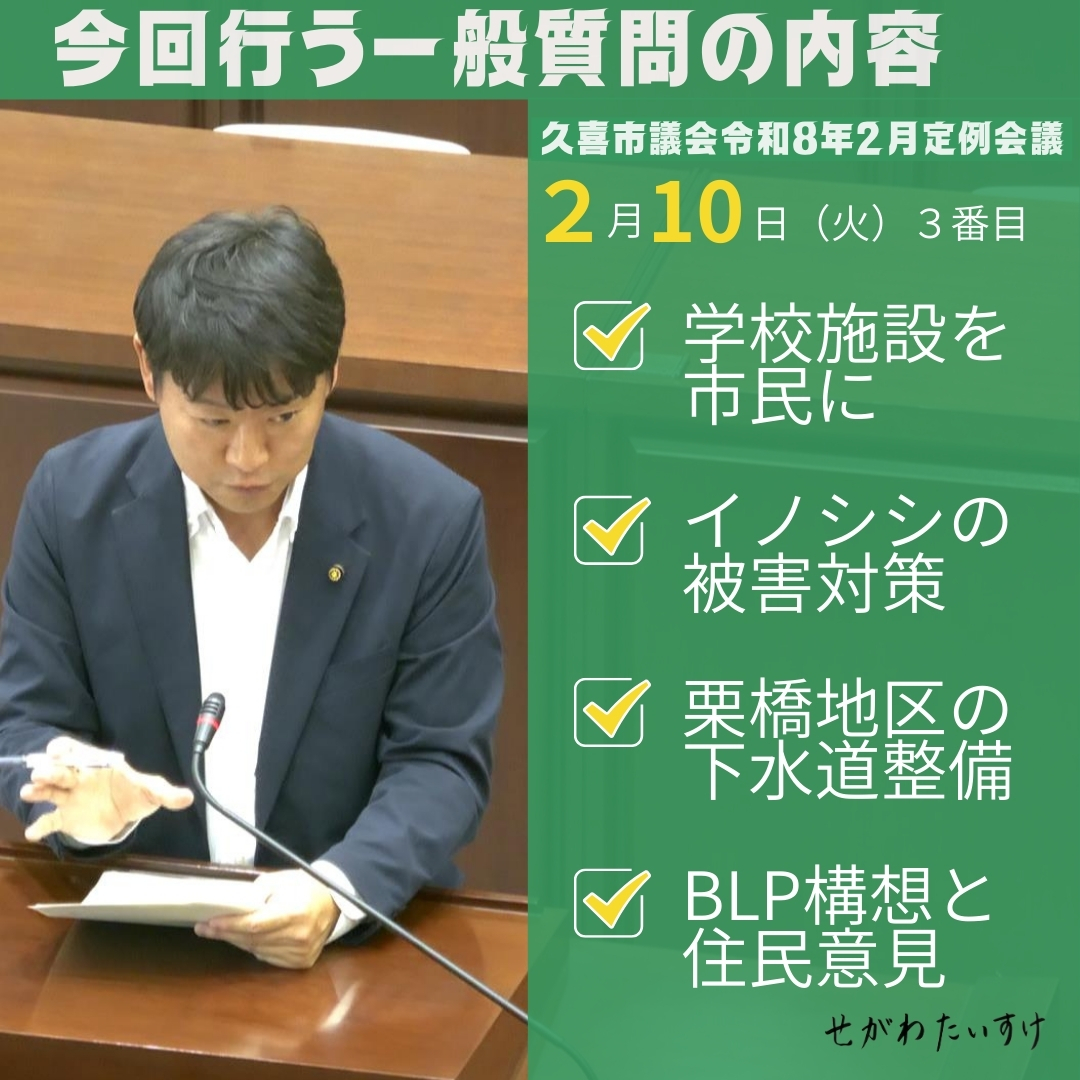久喜市議会令和8年2月定例会議で取り上げる一般質問の内容