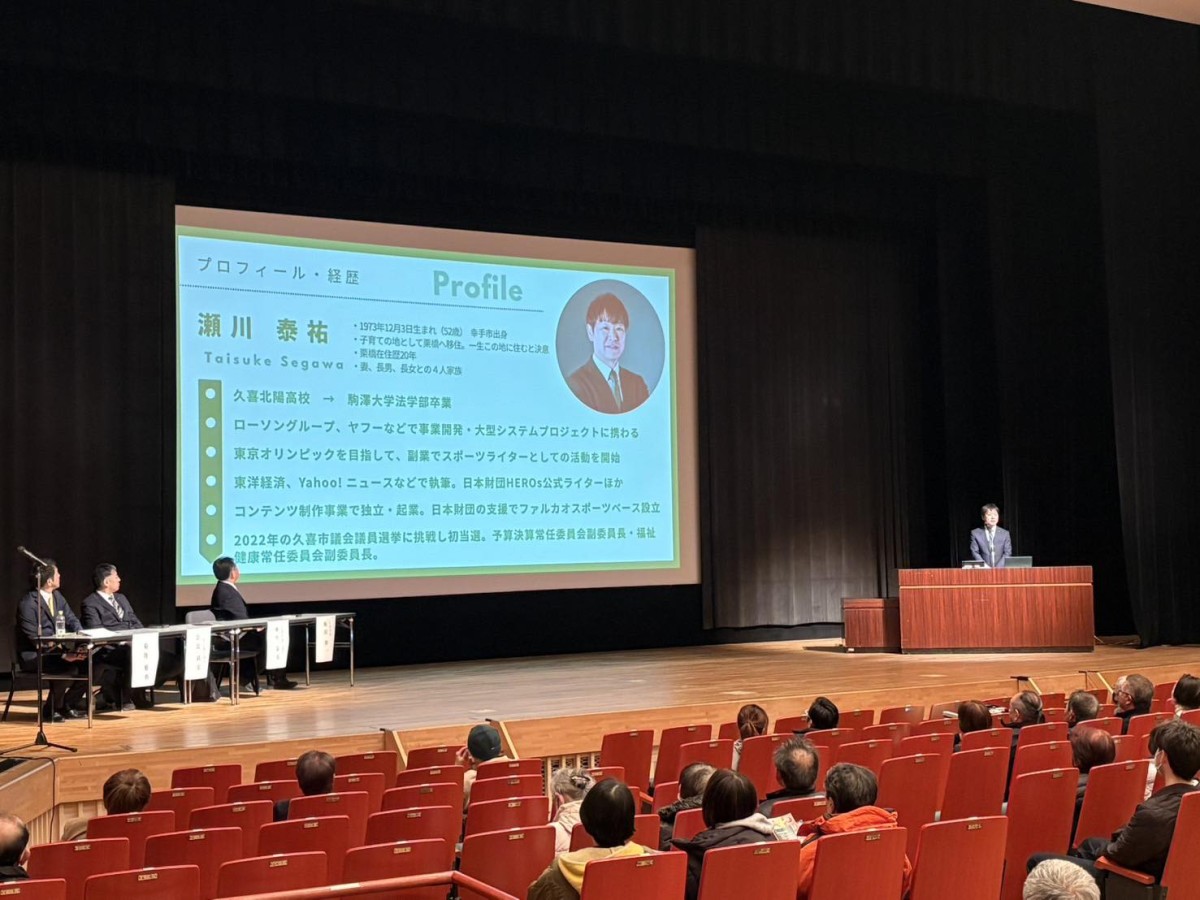 強風吹き荒れる中、200名ほどの方にご参集いただきまして、わたし自身も、持ち時間の範囲内ではありましたが、久喜市政1期目4年間の取り組み、そしてこれまで積み上げたものについて、お話しさせていただきました。