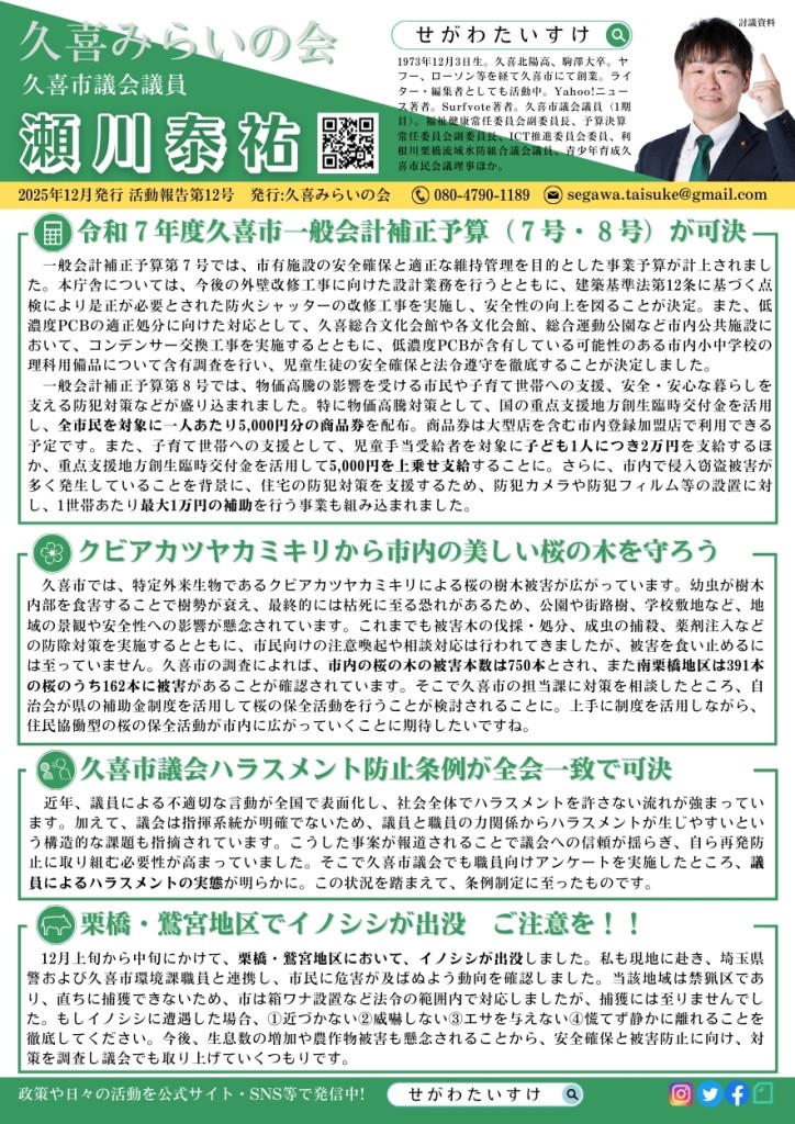 久喜市議会議員・せがわたいすけ(瀬川泰祐)公式サイト